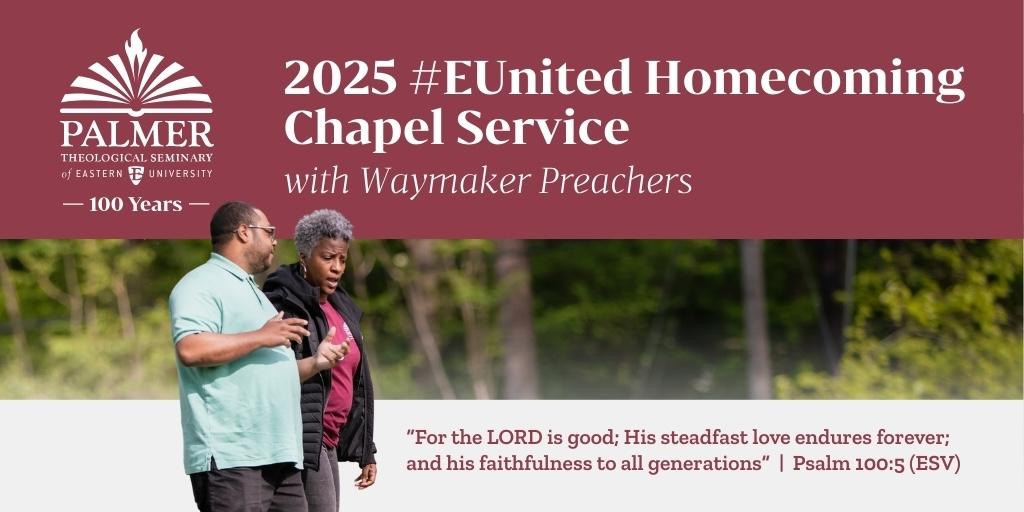 The Homecoming Chapel, scheduled for 3:00 p.m. at the McInnis Auditorium, serves as a cornerstone for the #EUnited Homecoming weekend. This complimentary event invites alumni, students, faculty, staff, family, and friends of Eastern University, and Palmer Theological Seminary to unite in worship featuring, Rev. Amy Banka, `09; Rev. Dr. Danielle Brown, `13; Rev. Dr. Wayne E. Croft Sr., `98; Rev. Dr. Catherine Williams, `10; and Rev. Elisa Media-Fuentes, `18 as Waymaker Preachers. It is a moment for the entire "EUnited community" to gather, reflect, and share in fellowship, with light refreshments available afterward.