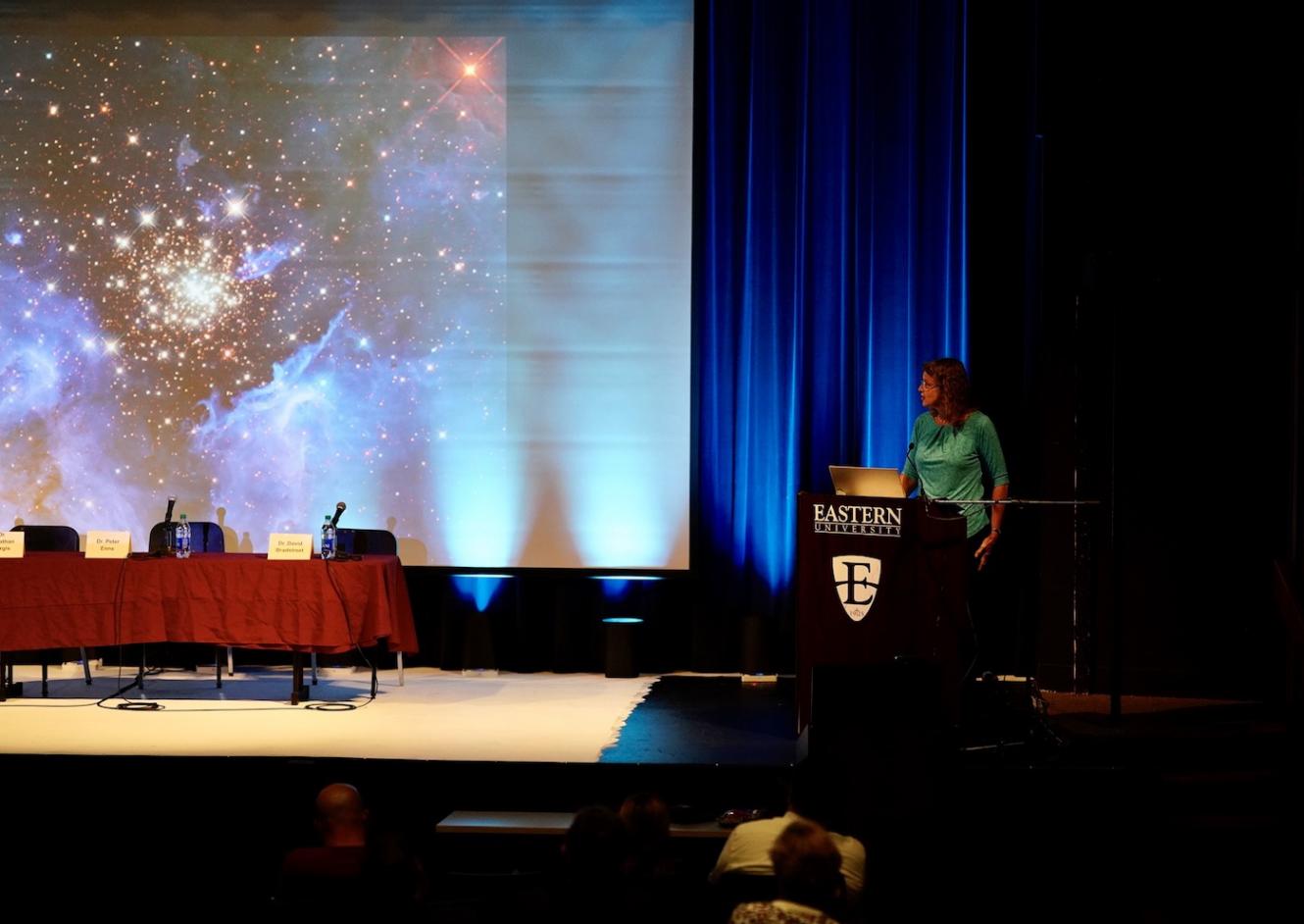 We inaugurated the symposium on Friday evening with a riveting discussion of astronomy, cosmic origins, and heavenly wonder. Eastern University has one of the most well-equipped observatories in the region and is home to a world-class planetarium, so it seemed fitting to begin our discussion there. Our first speaker, Dr. Jennifer Wiseman, an astronomer and director of the American Association for the Advancement of Science (AAAS) Dialogue on Science, Ethics, and Religion (DoSER) program, wowed us with a discussion about the incredible magnitude of the cosmos, and helped us to consider the many ways that science and religion are already informing our daily lives.